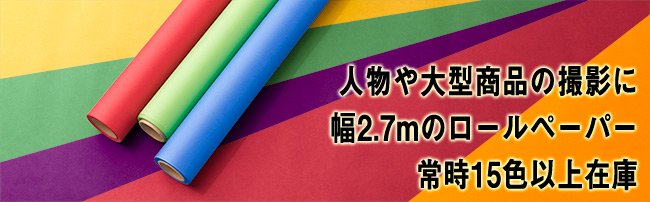 大型の商品や人物の撮影に使用するロールタイプの背景紙。無彩色の白、グレー、黒はもちろん常時15色以上在庫しています。微妙な色の調整は後処理でバッチリ補正します。