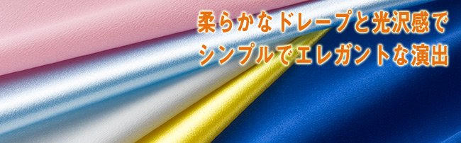 テーブルに引いて良し、背景に吊して良し、サテンの布の光沢感は、商品をエレガントに演出します。スタジオでは常時50色以上在庫しています。サテン以外にも様々な布素材を200種類以上在庫しています。