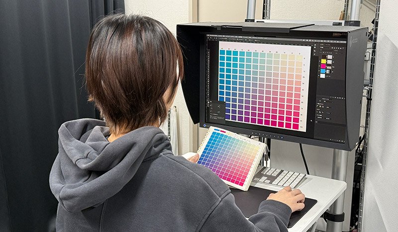 画像処理を行うにはモニターが正確に合っている必要があります。キャリブレーションモ ニターを使用することはもちろんですが、定期的にDICチャートとの誤差を確認し、調整を行なっています。