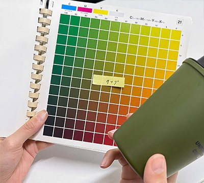 色補正は、ホワイトバランスを正確に合わせ、明るさやコントラストを整えた後に行います。細部の色合わせを行う際、手元に被写体実物があればそれを見ながら行いますが、実物が手元にない場合も多々あります。そのため、撮影時に色見本を作成するようにしています。見本画像を作成する余裕がない場合は、iPhoneでカラーチャートと一緒に撮影するか、DICのチャートで一番近い色を探しメモを残しています。実物がそばになくても細部まで色合わせを忠実に行うためです。