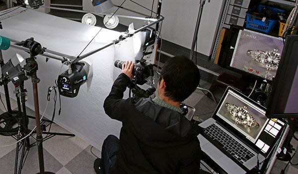スタジオ内は多数のモニターが設置され、全てのスタッフがどこからでもライブ映像と撮影データを確認できます。同時にスタジオ内に置かれたタブレットは、単独で撮影した全ての写真の任意の場所を拡大して表示できるため、周りに気をつかうことなく細部の確認が行えます。